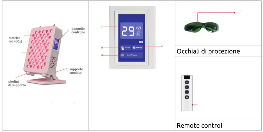 • Irradianza 160mW/cmq a 30 cm. (96 J/cmq in 10 min)